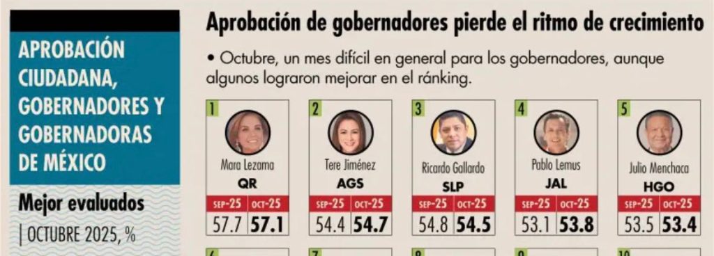 En una fotografía nacional donde las calificaciones se muestran estrechas entre sí, el estudio destaca que pocos mandatarios lograron avances. Entre ellos figura Pablo Lemus, quien se mantiene dentro del grupo de élite en desempeño gubernamental, consolidándose como uno de los perfiles de mayor estabilidad política y respaldo social.